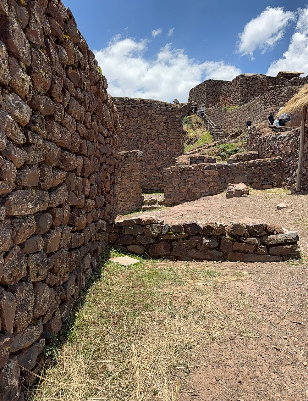C’est une joie de se promener dans ces petites rues pavées où coule les anciens canaux et aller rencontrer les artisans. Et puis les sites Incas !! le premier à flan de colline où se trouve d’anciens greniers à pommes de terre de Pinkuylluna. De belles frayeurs avec mon vertige. Puis la forteresse Inca, ancien site religieux et militaire, là j’ai été bouleversée par ce site, ces pierres.